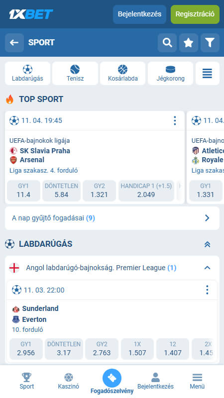 Az 1xBet oldalán nem csak a fogadható sportok száma, hanem az oddsok és piacok is lenyűgözőek. Sokféle fogadási opció érhető el a sportágakhoz, csak válassza ki kedvenc mérkőzését, és át is tekintheti, milyen lehetőségei vannak. Az 1xBet oldala az átlagosnál magasabb szorzókat kínál, így jó választás, ha biztos tippel rendelkezik.