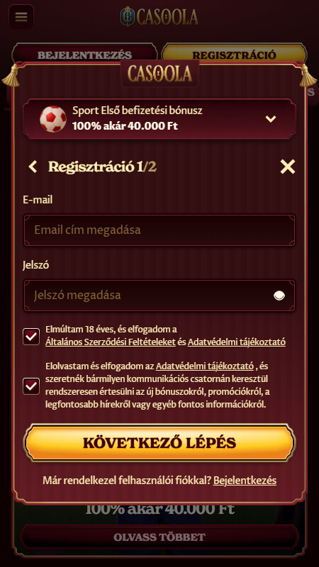 A regisztráció egy intuitív folyamat, amely néhány egyszerű lépésből áll a Casoola oldalán: