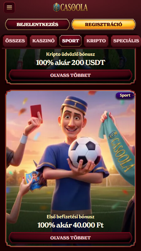 A Casoola sportfogadási platform kifejezetten aktív promóciós kínálattal rendelkezik, amely nemcsak az új játékosokat célozza meg, hanem a rendszeresen fogadó felhasználók számára is többféle bónuszt biztosít. A kínálatban megtalálható az üdvözlő bónusz, heti és hétvégi reload ajánlatok, cashback promóciók, valamint különböző fogadási funkciókhoz kapcsolódó jutalmak is.
