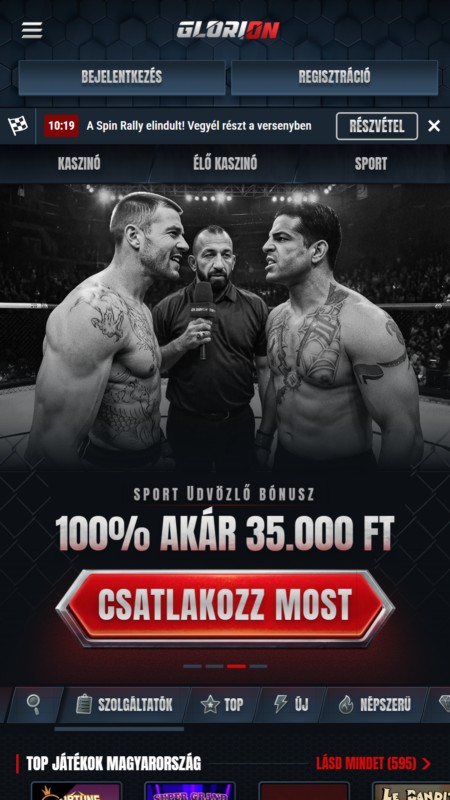 A Glorion nem rendelkezik önálló mobilapplikációval, sem az App Store-ban, sem a Google Play áruházban nem található letölthető app, viszont a böngészőre optimalizált, úgynevezett PWA alapú mobil verzió kiválóan teljesít. Ez az oldal nem egy applikáció pótléka: valódi alternatíva. Ugyanazt a funkcionalitást kínálja, amit az asztali felület, csak kisebb kijelzőre szabva. A menük jól strukturáltak, a navigáció gördülékeny, és az élő fogadásoknál is stabil marad minden mozdulat.
