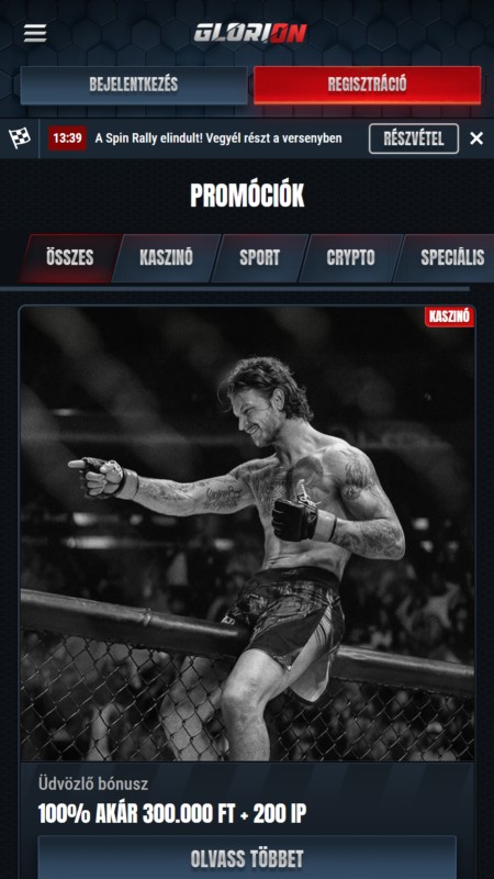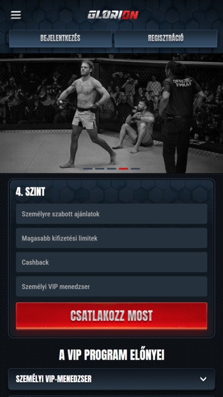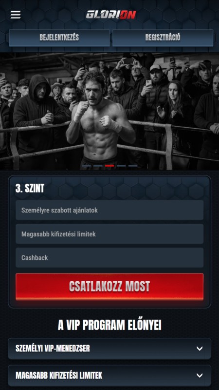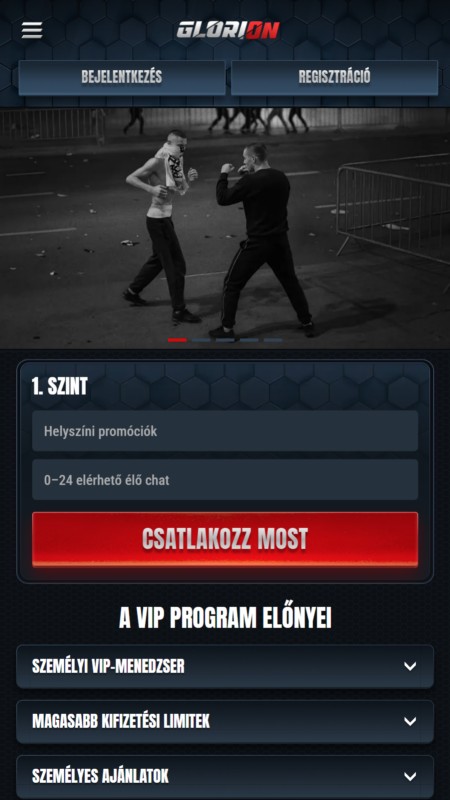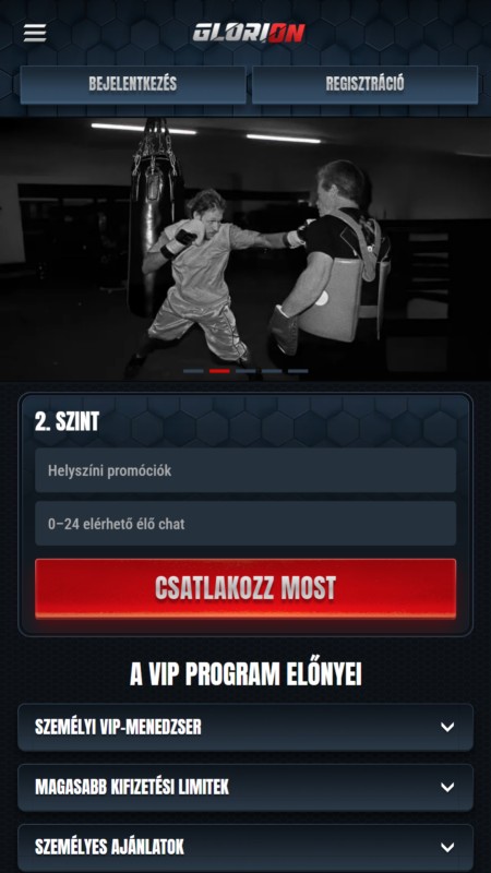 A Glorion nem rendelkezik önálló mobilapplikációval, sem az App Store-ban, sem a Google Play áruházban nem található letölthető app, viszont a böngészőre optimalizált, úgynevezett PWA alapú mobil verzió kiválóan teljesít. Ez az oldal nem egy applikáció pótléka: valódi alternatíva. Ugyanazt a funkcionalitást kínálja, amit az asztali felület, csak kisebb kijelzőre szabva. A menük jól strukturáltak, a navigáció gördülékeny, és az élő fogadásoknál is stabil marad minden mozdulat.