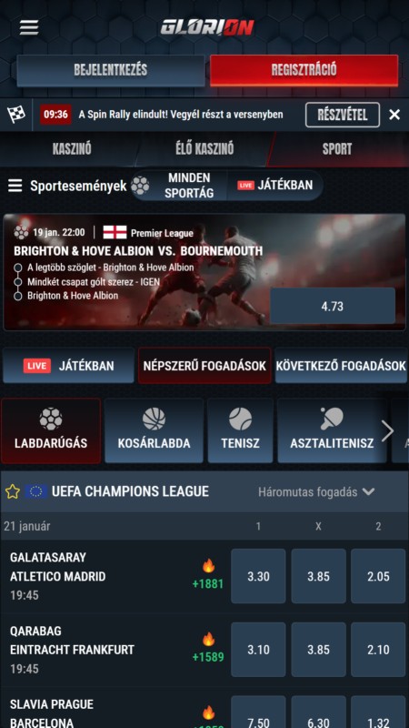 A Glorion fogadási kínálata nem csak széles, kiegyensúlyozott. Itt nem torzul el a fókusz néhány nagy bajnokság javára: a platform egyszerre figyel a globális eseményekre és a kisebb ligák részleteire is.
