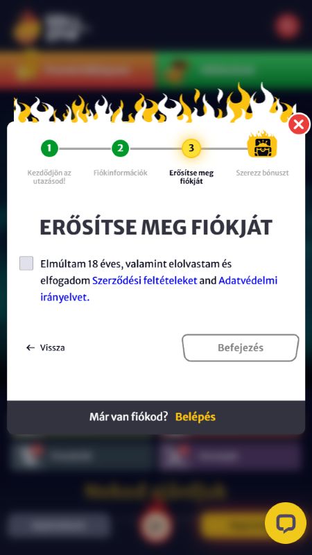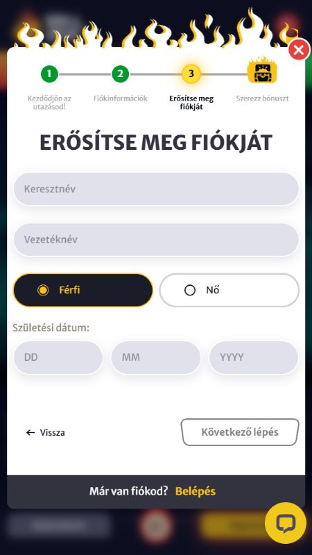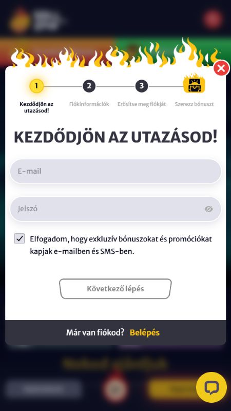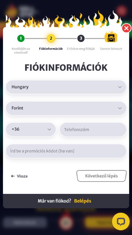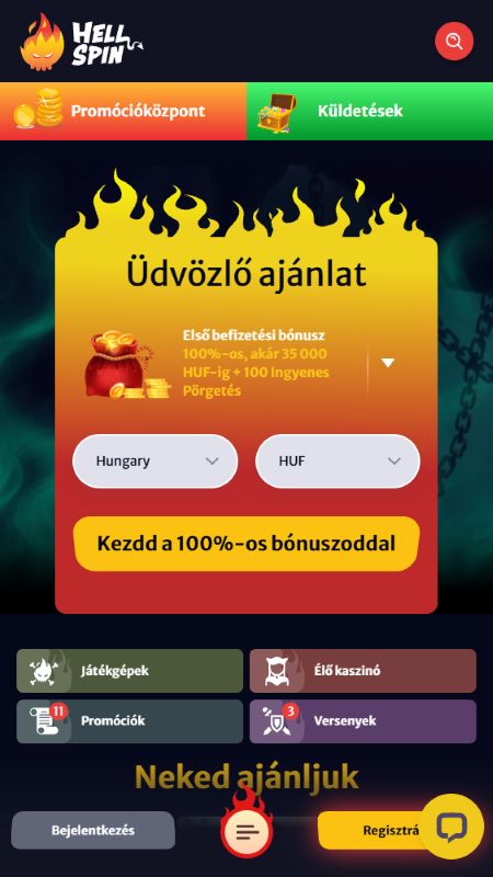 A regisztráció szerencsére nem nagy flash. Ha ránézel a HellSpin oldalára, elég gyorsan egyértelmű lesz, merre kell indulni. Ha már használtál hasonló oldalt, ismerős lesz a folyamat, ha pedig nem, akkor is könnyen követhető.