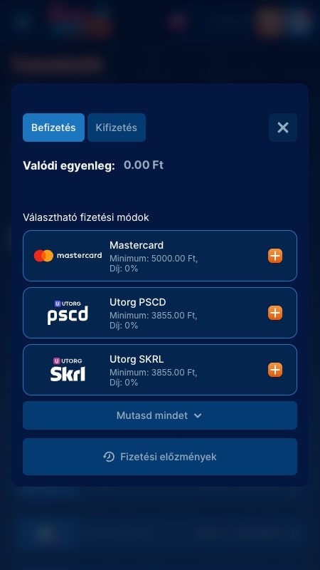 | MiFinity | 5.000–800.000 Ft | 5.000–800.000 Ft | Azonnali | Ingyenes |